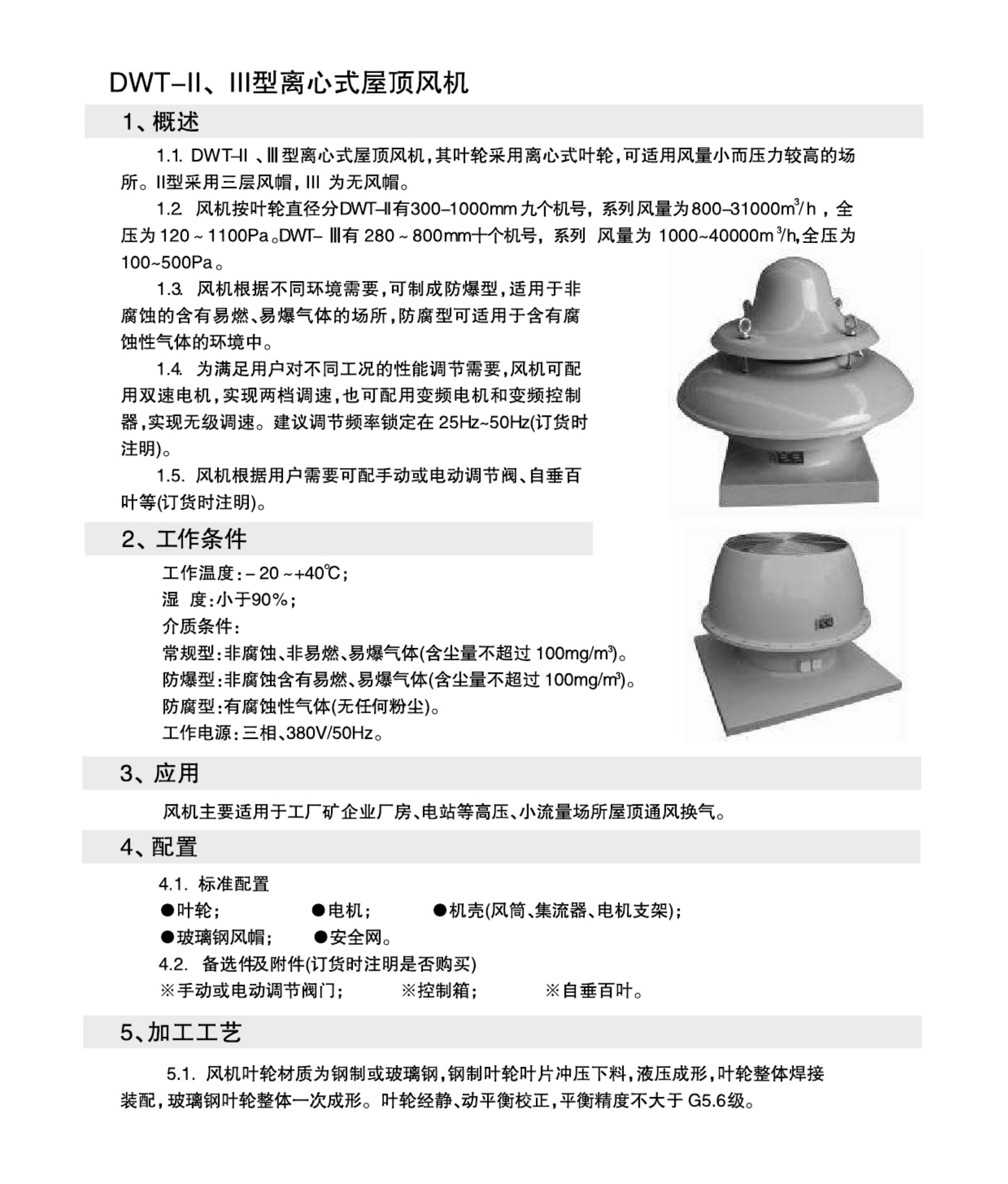 DWT-II,III型离心式屋顶风机